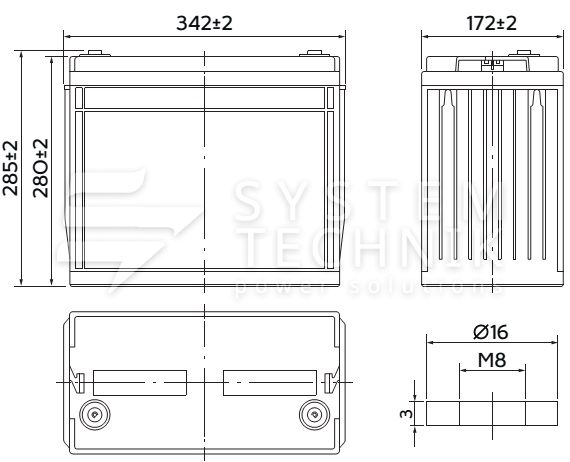 - Срок хранения без подзаряда: 6 мес. при 25°C;