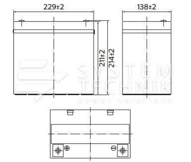 - Срок хранения без подзаряда: 6 мес. при 25°C;