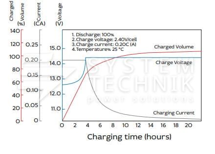 - Срок хранения без подзаряда: 6 мес. при 25°C;
