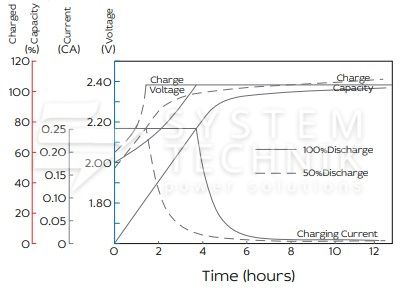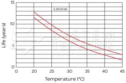 - Срок хранения без подзаряда: 6 мес. при 25°C;
