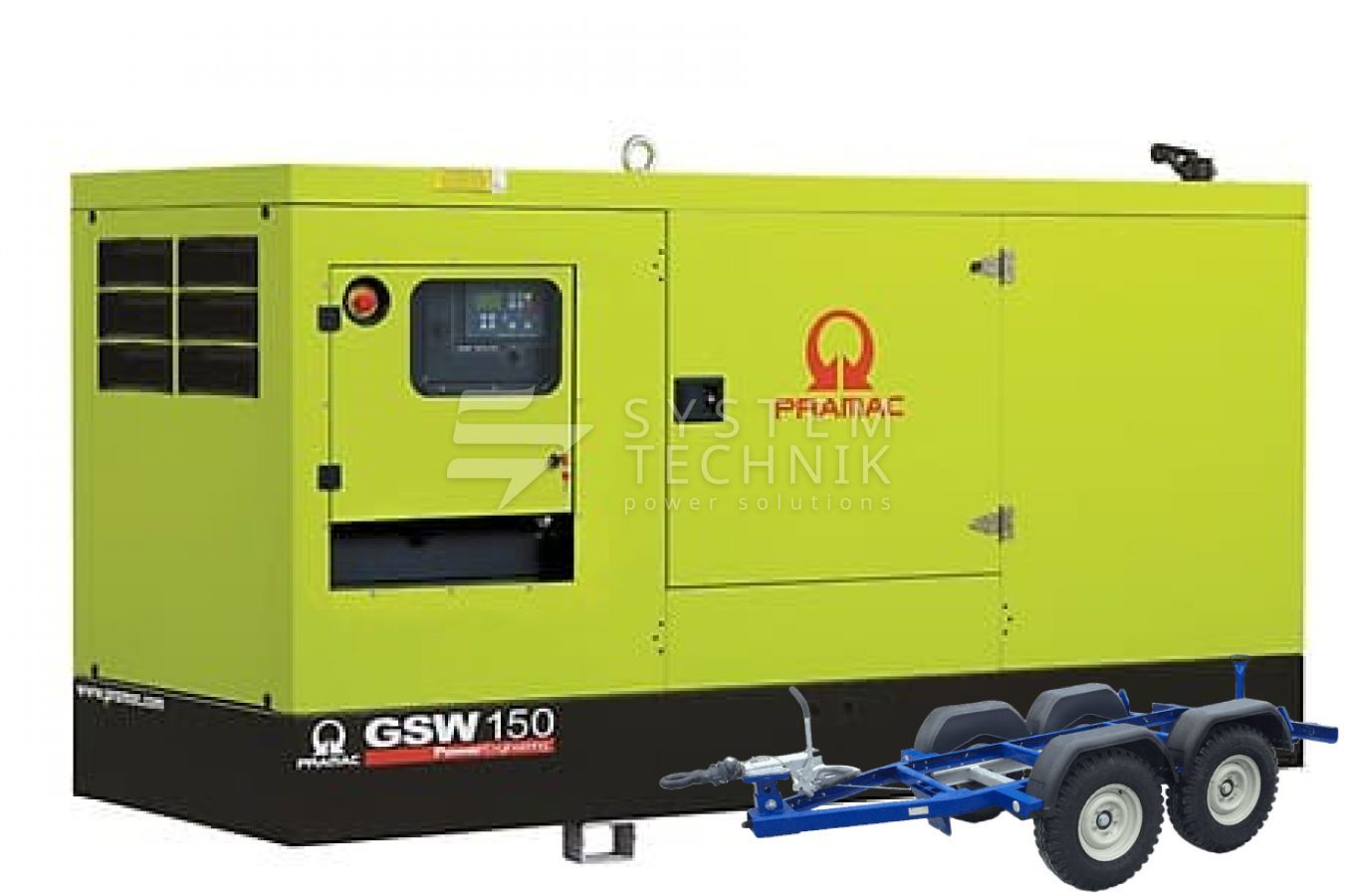 - Дизельный генератор Pramac GSW 150 P 400V В кожухе на прицепе