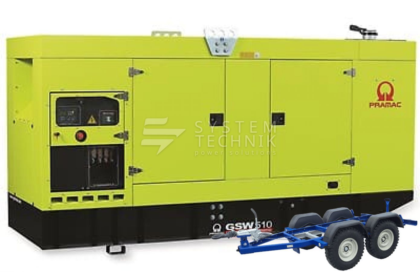 - Дизельный генератор Pramac GSW 510 DO 440V В кожухе на прицепе
