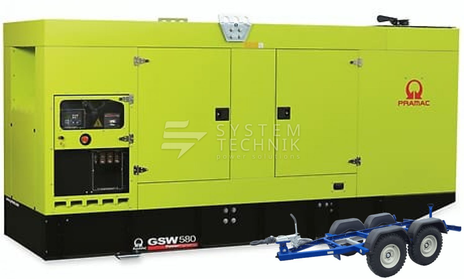- Дизельный генератор Pramac GSW 580 DO 440V В кожухе на прицепе