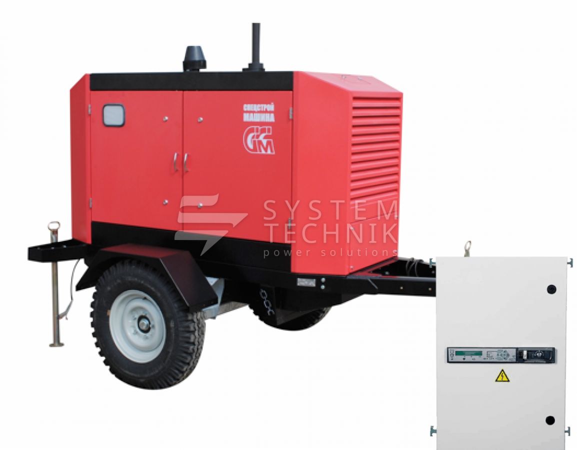 Дизельный генератор ССМ ЭД-20-Т400-2РПМ1 в погодозащитном кожухе на шасси с АВР на прицепе