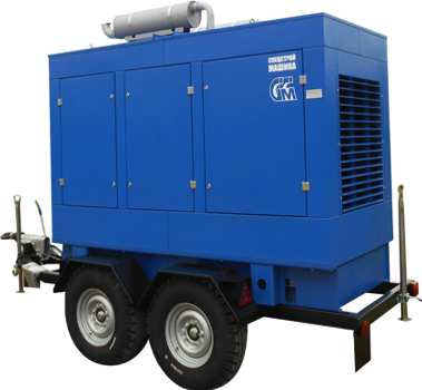 - ССМ ЭД-300-Т400-1РКМ2 в шумозащитном кожухе на шасси на прицепе