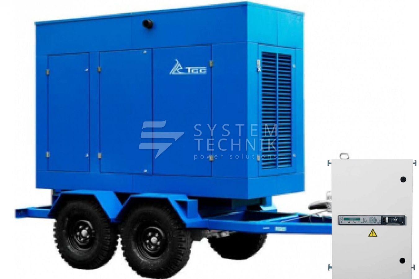 - ТСС ЭД-100-Т400-2РПМ26 в погодозащитном кожухе на прицепе с АВР